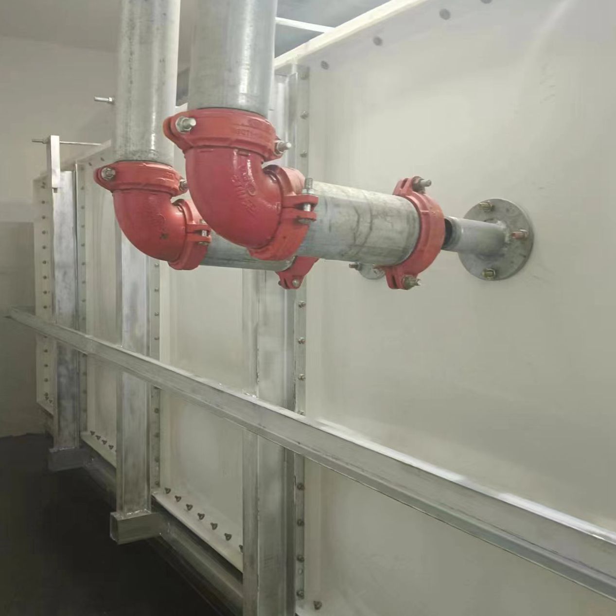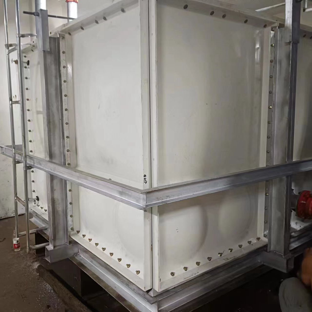 我司承接的山東省菏澤市單縣公安局執(zhí)法辦案中心無(wú)內(nèi)件外加固玻璃鋼水箱已經(jīng)安裝試水完成。由于水質(zhì)特殊性采用的是水箱內(nèi)部無(wú)支撐拉筋等輔助配件,在水箱外側(cè)用工字鋼加固。可以大大延長(zhǎng)水箱的使用壽命。