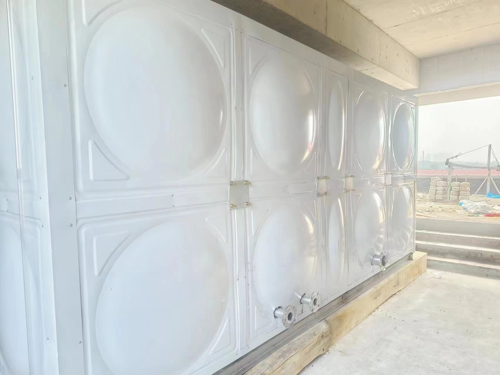我司承接的山西省晉中市平遙縣達蒲小學玻璃鋼聚氨酯彩鋼板保溫水箱已經(jīng)安裝試水完成。作為消防水箱,安裝在樓頂。水箱安裝前是需要提前做基礎的,每個不同規(guī)格的玻璃鋼水箱都有不同的基礎要求的。玻璃鋼水箱底部應設置高為50cm混凝土或者磚砌的基礎,玻璃鋼水箱周圍和頂部應該留有≥50cm的安裝與檢修空間,方便安裝人員檢修以及后期玻璃鋼水箱清洗與維護等。