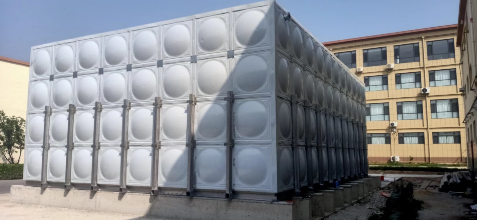 2、土建施工時(shí)先做好支墩,水箱四周及箱底單元板塊這間的連接縫要坐落在支墩上。
