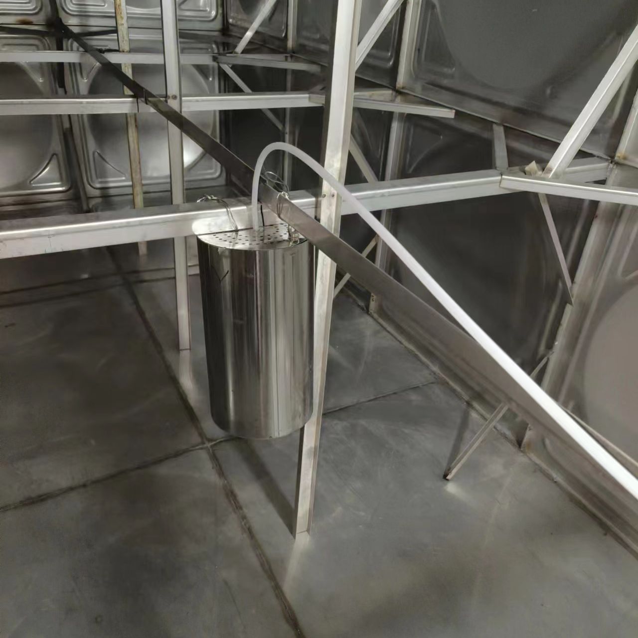 水箱自潔消毒器是為水箱中水的長期滯存,經常遭受病菌、微生物侵襲、污染嚴重的現狀而研制的高新產品。由于水箱的水有時長期停留、不循環,使水中的藻類大量繁殖,并遭受各種微生物、細菌等的污染,造成水箱及水池的二次污染非常嚴重,使水質達不到衛生標準。水箱自潔消毒器可以通過定時、定量的輸入臭氧,循環處理水箱、水池中各部位的水體,使水箱、水池以及其中的水得到有效消毒和凈化,方便而又經濟地解決二次供水中的水質污染問題。