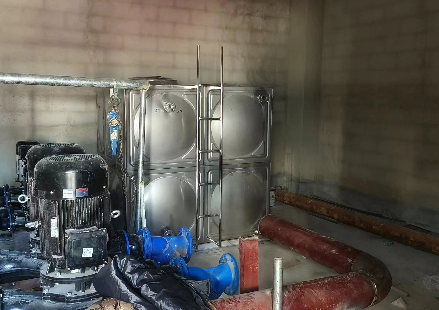 我司承接的河北省邢臺市地下室生活水箱樓頂加熱循環水箱,已安裝試水完成。不銹鋼水箱為全封閉,有進水、出水、溢流、排污之功能,安裝簡便,您只需將水箱 置于房頂,接上水管即可使用,保養十分方便。不銹鋼水箱廣泛用于高樓公寓、工廠、學校、醫院、別墅及其它各個領域。