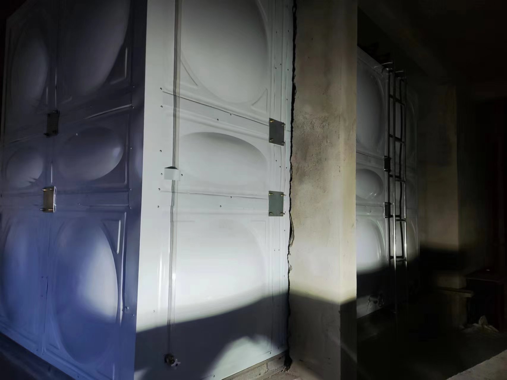 我司承接的山西省晉中市平遙縣程源-城上城樓頂玻璃鋼消防水箱項目,已安裝試水完畢。此水箱內部采用SMC玻璃鋼水箱,內部采用SMC玻璃鋼材質,外加聚氨酯保溫彩鋼板外殼,在外觀完美的同時又了良好的保溫效果。
