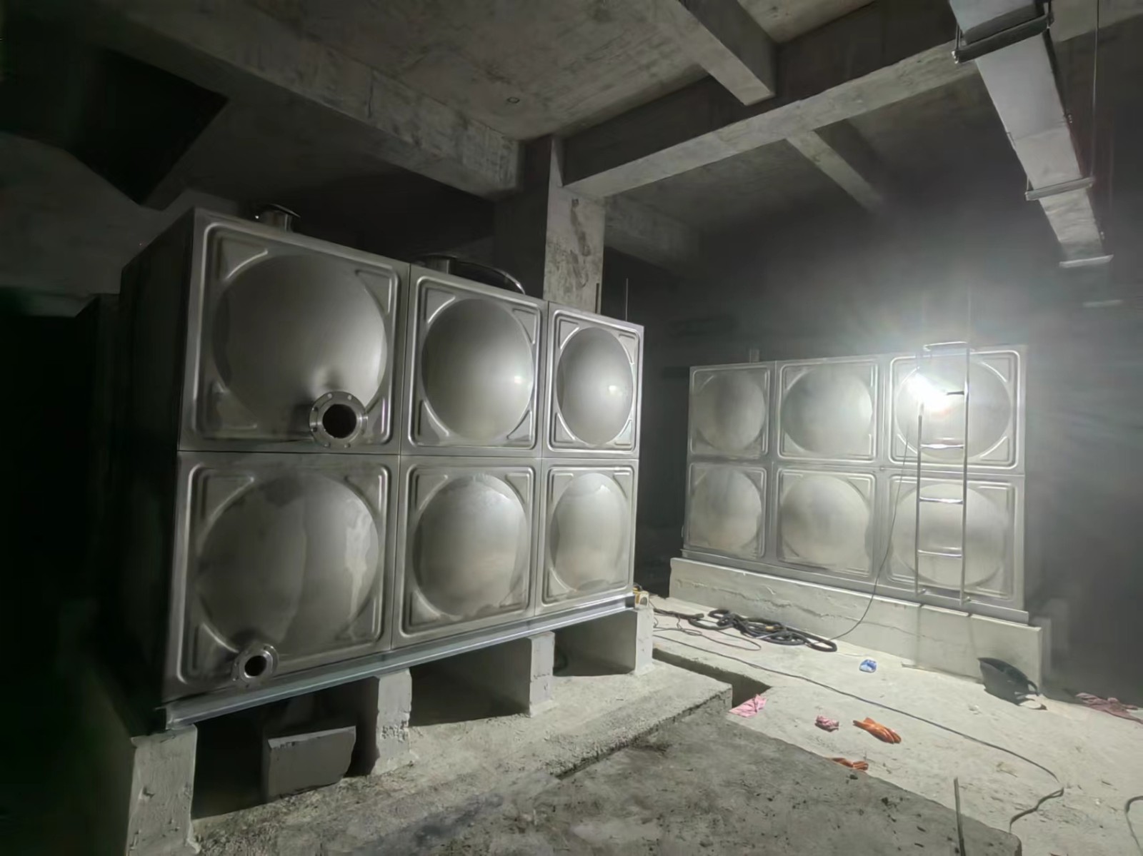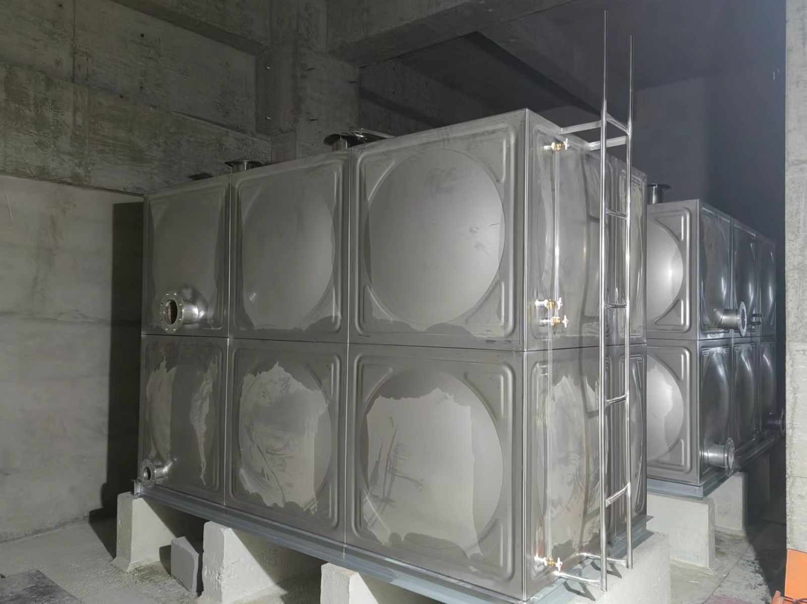 我司承接的陜西省西安市金茂國際生活水箱項目已完工。全焊接不銹鋼水箱采用了球面與平板的組合方式,這是一種理想的力學(xué)結(jié)構(gòu)。這種不銹鋼水箱具有流暢的線條、美觀的外觀造型。