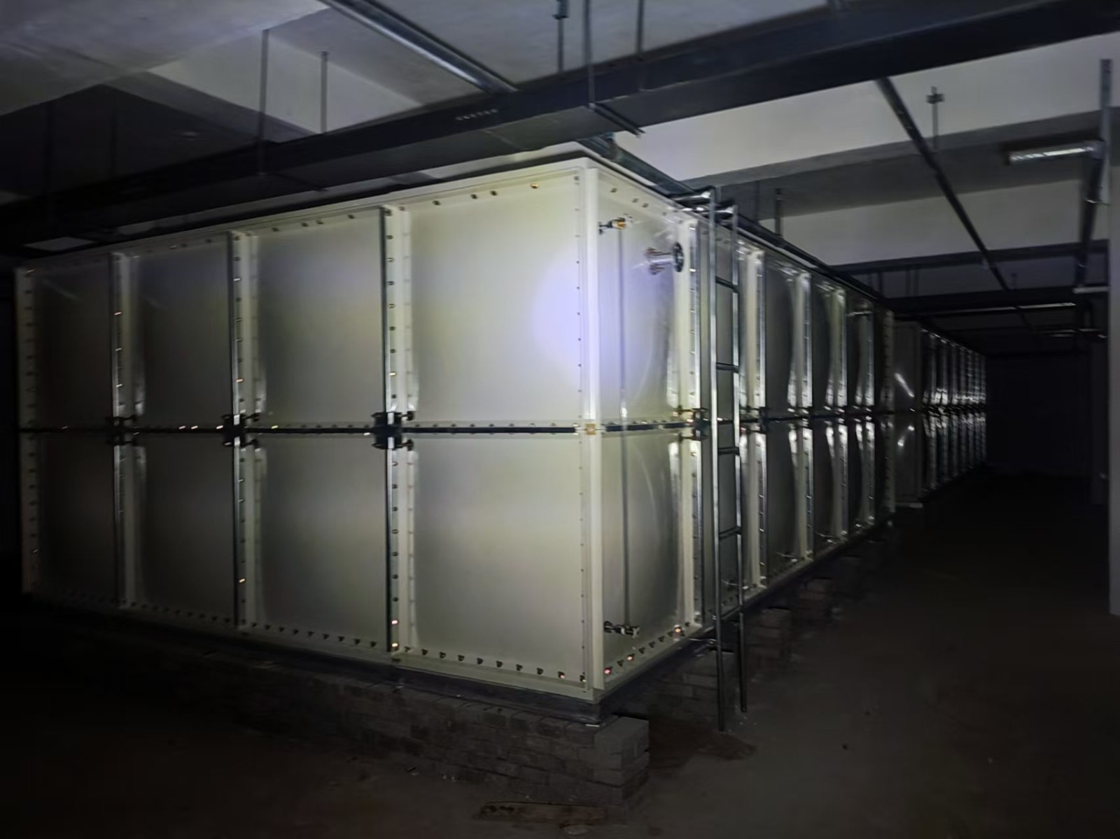 公司我司承接的河北省任丘市京淶一品地下室人防水箱項目,已安裝試水完畢。玻璃鋼水箱廣泛適用于工礦、企事業單位、住宅、賓館、飯店等建筑,作為生活飲用水、中水處理、消防用水及其他用水儲水設施。