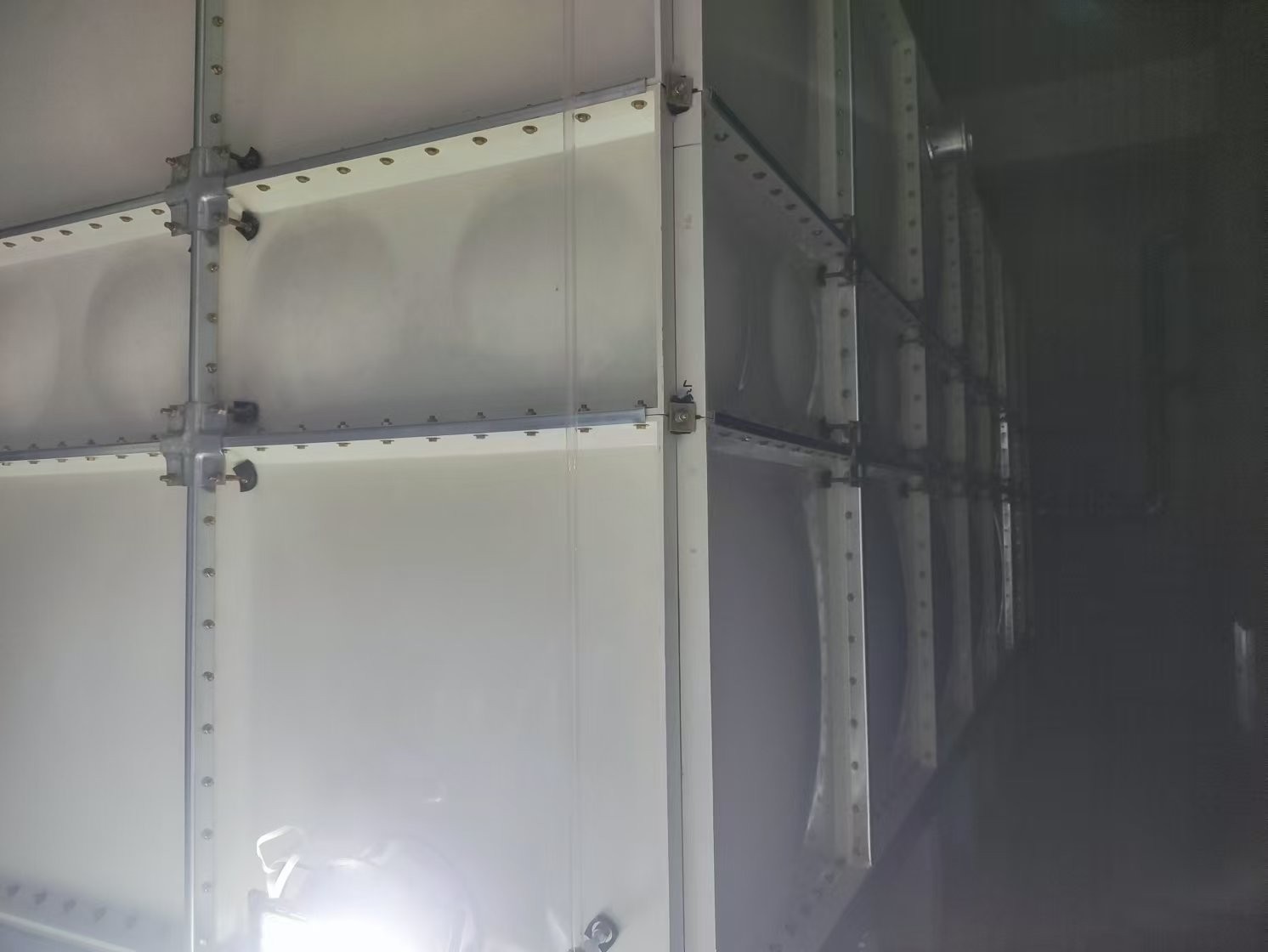 d.重量輕:混凝土水箱容重與自身重量之比為1:1,SMC模壓水箱為1:0.1-0.2,所以在設(shè)計(jì)過程中無須考慮自身重量,因此被稱為輕便式水箱。