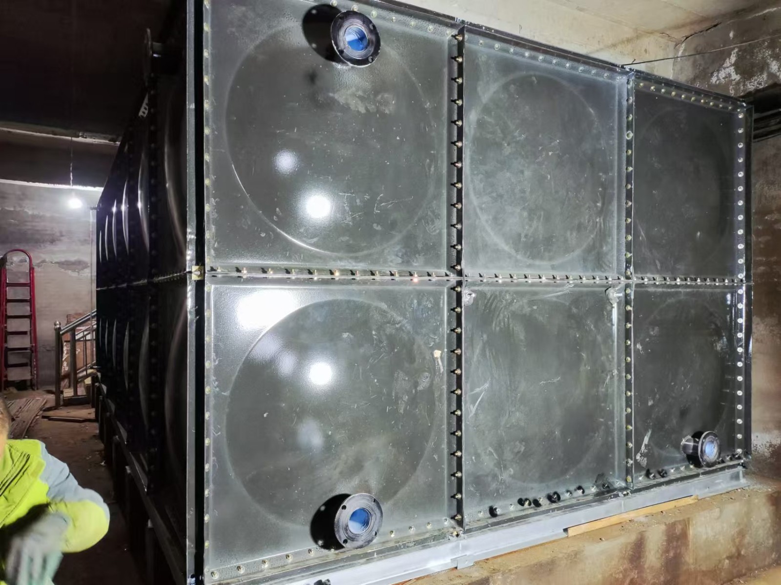 我司承接的河北省邢臺市寧晉縣東旺新村地下室生活飲用水項目,搪瓷鋼板水箱已安裝完成。搪瓷鋼板水箱的瓷面光滑容易清洗,耐腐蝕,而鋼板組裝結構,不易變形、抗震性強、抗沖擊力大。